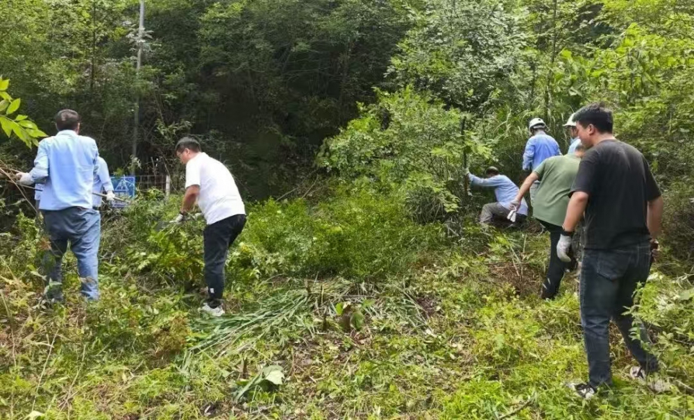 因長期停用,炸藥庫周邊雜草叢生、灌木密布,部分區(qū)域雜草高達兩米,不僅影響安全巡查,還存在多種風險。現(xiàn)場,職工們手持割草機、鐮刀、鐵鍬等工具,分工協(xié)作:年輕職工主動承擔割草、砍伐重任,老員工則負責理碎石、搬運雜物,黨員先鋒們更是一馬當先,帶頭攻堅復雜區(qū)域。盡管汗水浸透工裝,雙手磨出水泡,但無人喊苦叫累,展現(xiàn)出強大的團隊凝聚力。